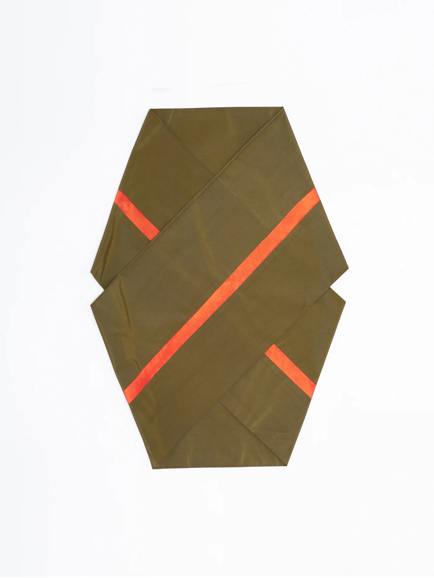 High-density silk taffeta, woven in Yonezawa, Yamagata Prefecture, also known as paper taffeta, is a fabric that can be shaped like paper. Silk taffeta is woven using a method called yarn dyeing, in which the threads are dyed first and then woven, and the color changes depending on the viewing angle, giving it a beautiful luster unique to silk.