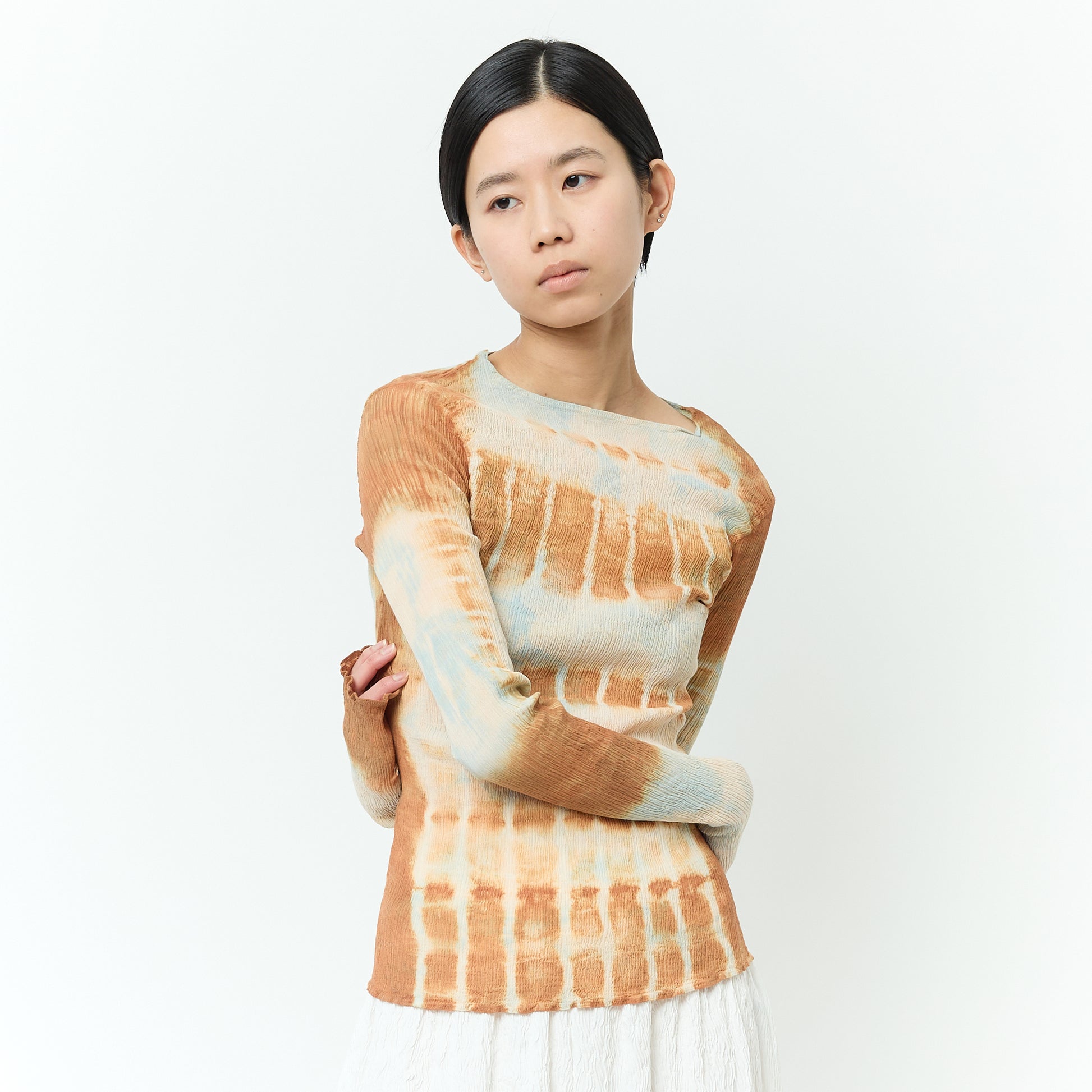 BUNZABURO's artistically dyed long-sleeved tops are great for any season. The beauty of the subtle transitions of different colors unfolds in each piece.